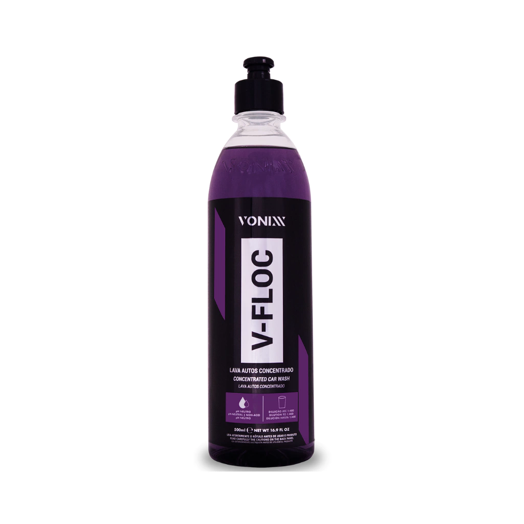 V-Floc é um lava autos de alta performance e de pH neutro. Sua fórmula contém agentes condicionadores e tensoativos especiais que proporcionam uma lavagem suave e eficiente. V-Floc tem alto grau de lubrificação, promovendo redução significativa do coeficiente de atrito, proporcionando um melhor deslize da luva microfibra e reduzindo de forma efetiva as chances de micro riscos na pintura. V-Floc também promove brilho e aspecto de renovação da pintura.